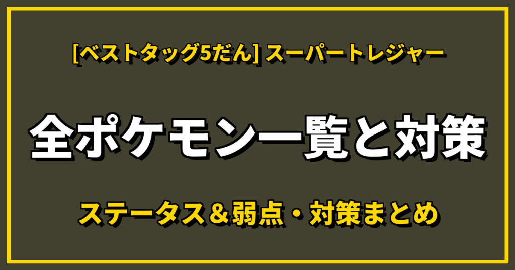 【ベストタッグ5だん】★5(スーパートレジャー)全ポケモン一覧 弱点とわざを一覧にまとめました!詳細を知りたい場合はボタンをタップしてください。 ディアルガ パルキア レックウザメガシンカ ジガルデメガシンカ ダークライメガシンカ メガニウムメガ... -
