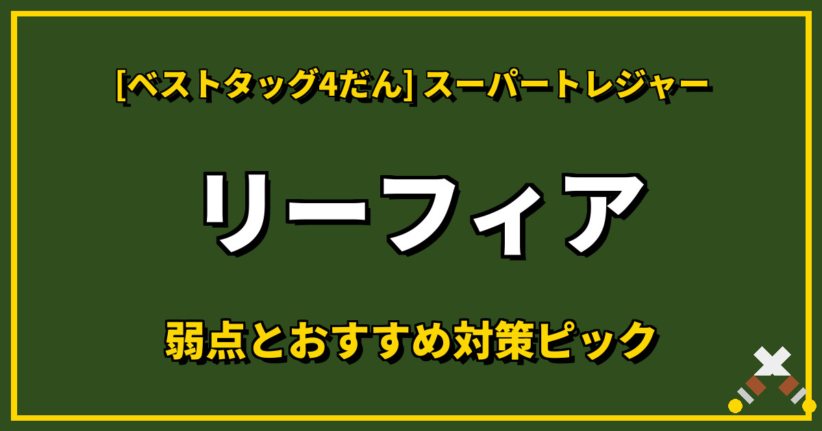 ポケモンフレンダ「ベストタッグ4だん」に登場する、リーフィア(★5)のステータスと、倒すためのおすすめポケモン(対策ピック)をまとめました!