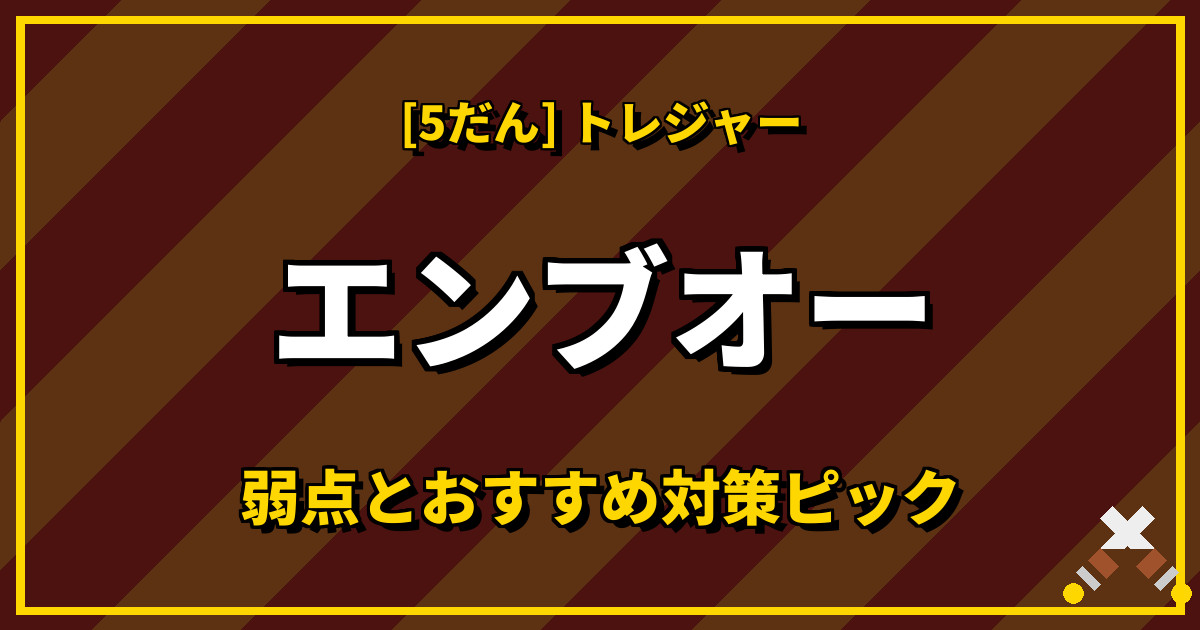 ポケモンフレンダ「5だん」に登場する、エンブオー(★4)のステータスと、倒すためのおすすめポケモン(対策ピック)をまとめました!